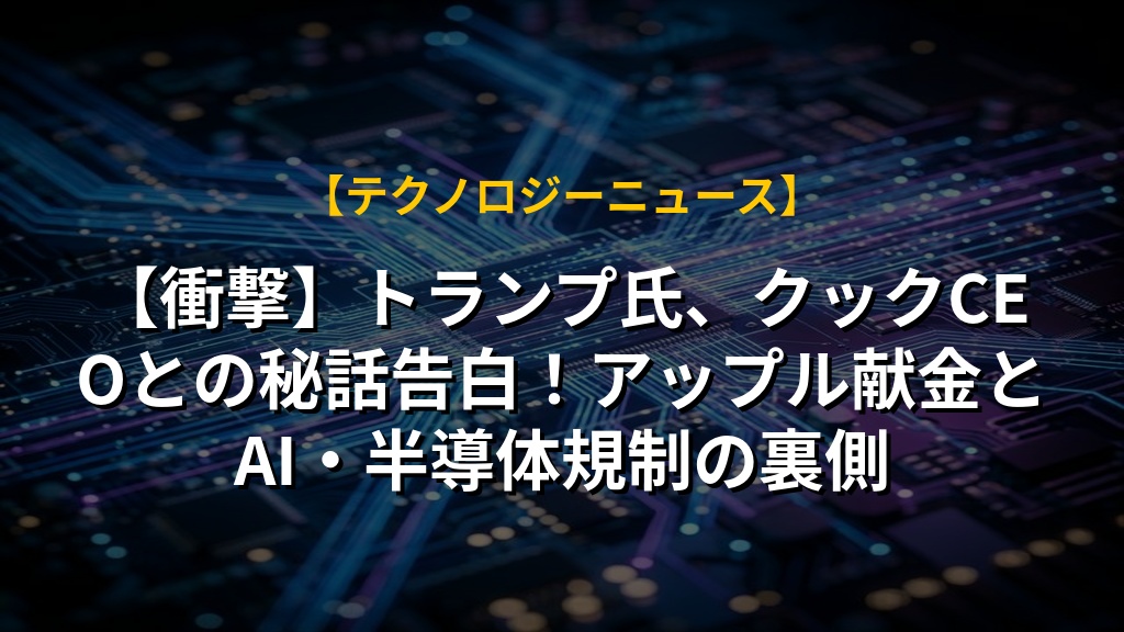 【衝撃】トランプ氏、クックCEOとの秘話告白!アップル献金とAI・半導体規制の裏側
