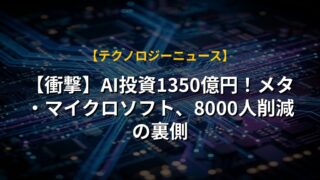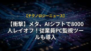 メタがAI開発に注力するため、全従業員の10%にあたる8,000人の削減を発表しました。AIによる業務効率化が進む中で、他の企業も同様の動きを見せており、AI競争が激化しています。メタは「パーソナル超知能」の実現を目指しており、今後の技術革新に期待したいです。一方で、人員削減は社会への影響も考慮すべき課題であり、AI時代における新たな働き方やスキル習得の機会提供が重要になってくるでしょう。