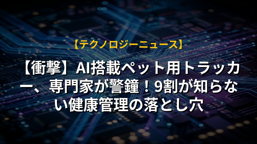 【衝撃】AI搭載ペット用トラッカー、専門家が警鐘!9割が知らない健康管理の落とし穴