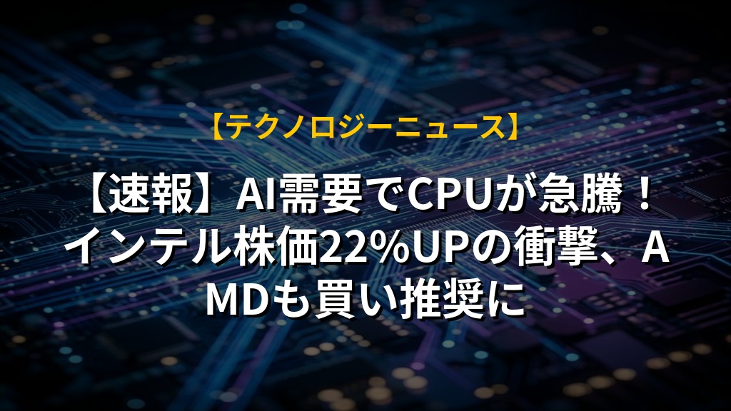 【速報】AI需要でCPUが急騰!インテル株価22%UPの衝撃、AMDも買い推奨に