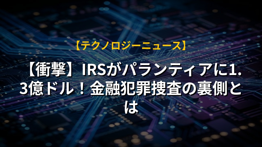 【衝撃】IRSがパランティアに1.3億ドル!金融犯罪捜査の裏側とはの注目ポイントまとめ