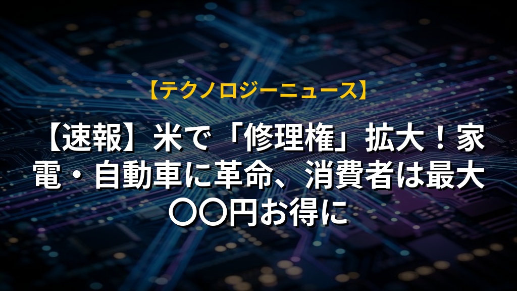 【速報】米で「修理権」拡大!家電・自動車に革命、消費者は最大〇〇円お得に