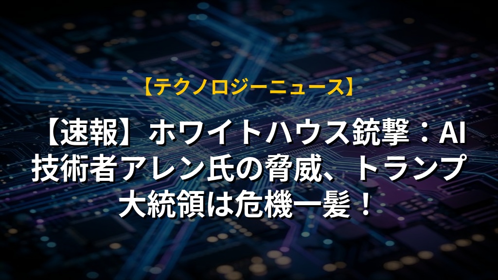 【速報】ホワイトハウス銃撃:AI技術者アレン氏の脅威、トランプ大統領は危機一髪!