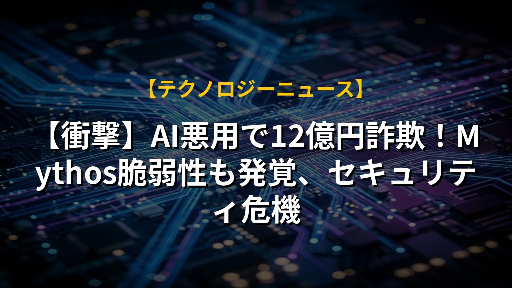 【衝撃】AI悪用で12億円詐欺!Mythos脆弱性も発覚、セキュリティ危機