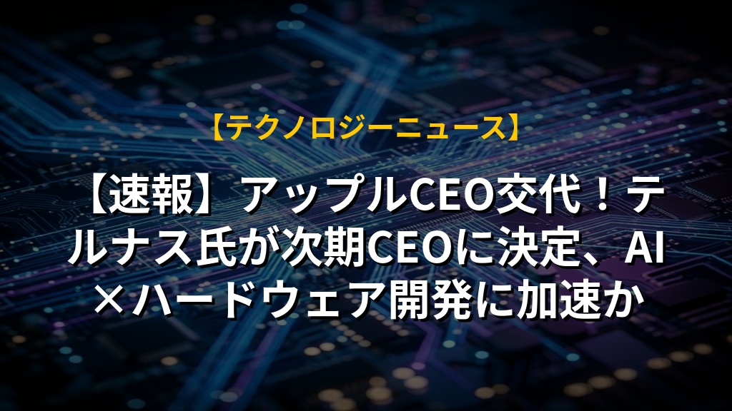 【速報】アップルCEO交代!テルナス氏が次期CEOに決定、AI×ハードウェア開発に加速かの注目ポイントまとめ
