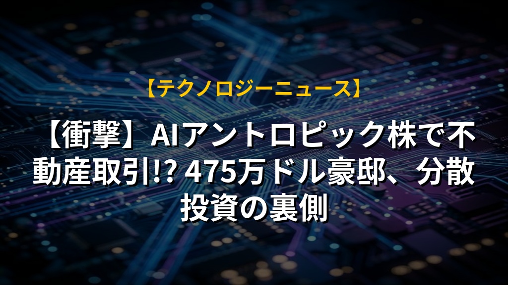 【衝撃】AIアントロピック株で不動産取引!? 475万ドル豪邸、分散投資の裏側