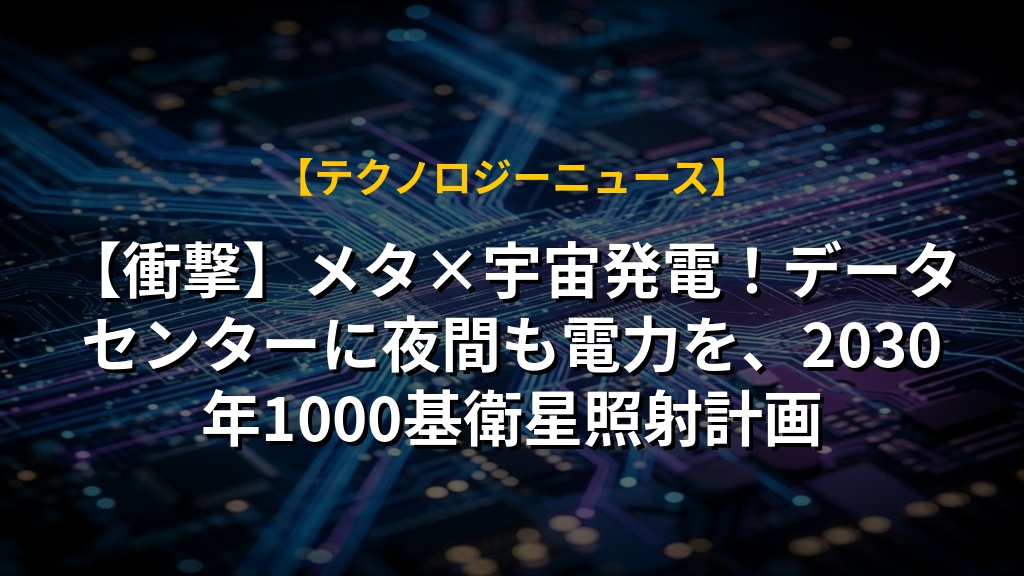 【衝撃】メタ×宇宙発電!データセンターに夜間も電力を、2030年1000基衛星照射計画の注目ポイントまとめ