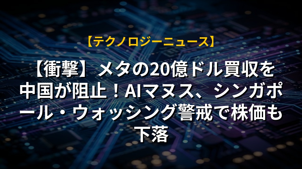 【衝撃】メタの20億ドル買収を中国が阻止!AIマヌス、シンガポール・ウォッシング警戒で株価も下落