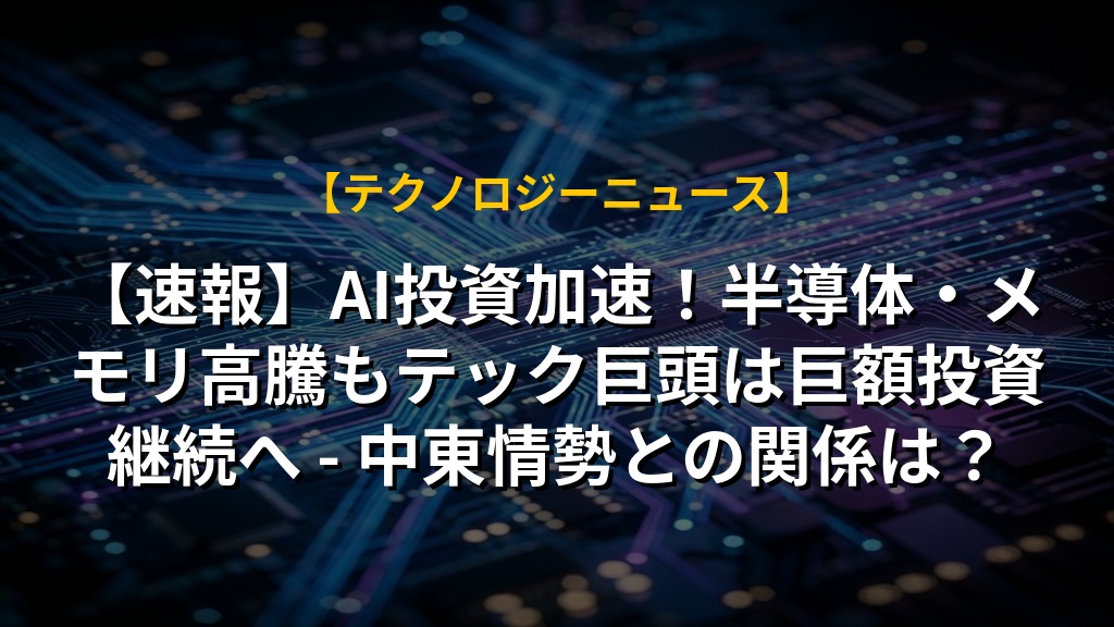 【速報】AI投資加速!半導体・メモリ高騰もテック巨頭は巨額投資継続へ – 中東情勢との関係は?