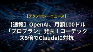 【速報】OpenAI、月額100ドル「プロプラン」発表!コーデックス5倍でClaudeに対抗