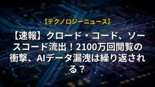 【速報】クロード・コード、ソースコード流出!2100万回閲覧の衝撃、AIデータ漏洩は繰り返される?