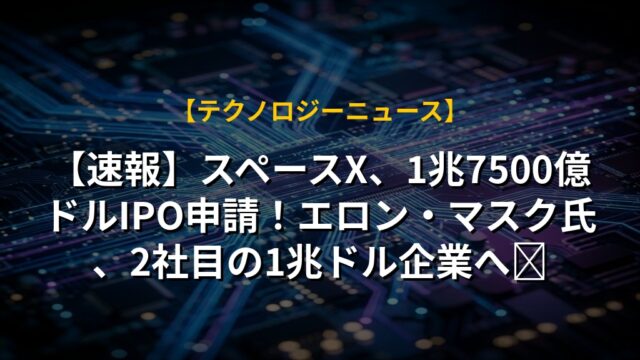 【速報】スペースX、1兆7500億ドルIPO申請!エロン・マスク氏、2社目の1兆ドル企業へ🚀