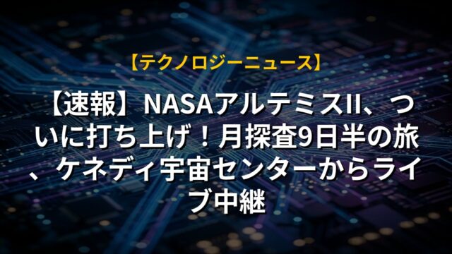 【速報】NASAアルテミスII、ついに打ち上げ!月探査9日半の旅、ケネディ宇宙センターからライブ中継