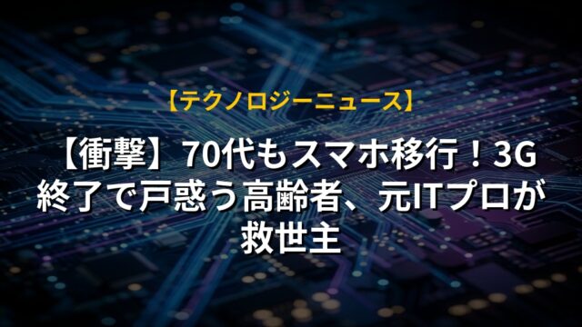 【衝撃】70代もスマホ移行!3G終了で戸惑う高齢者、元ITプロが救世主
