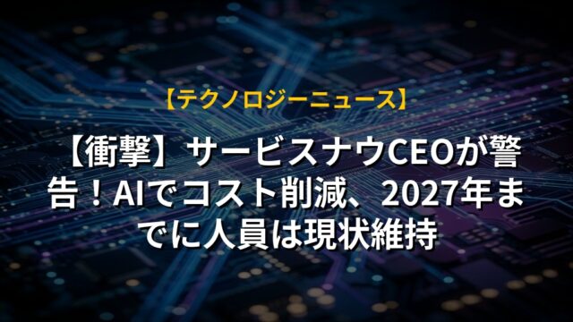 【衝撃】サービスナウCEOが警告!AIでコスト削減、2027年までに人員は現状維持