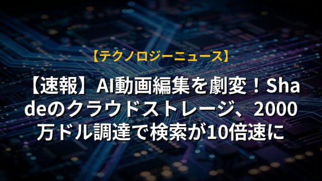 【速報】AI動画編集を劇変!Shadeのクラウドストレージ、2000万ドル調達で検索が10倍速に