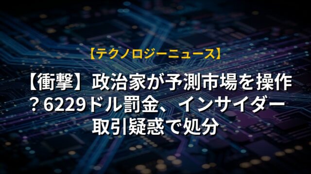 【衝撃】政治家が予測市場を操作?6229ドル罰金、インサイダー取引疑惑で処分