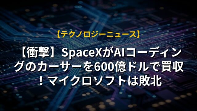 【衝撃】SpaceXがAIコーディングのカーサーを600億ドルで買収!マイクロソフトは敗北