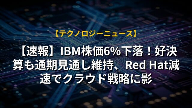 【速報】IBM株価6%下落!好決算も通期見通し維持、Red Hat減速でクラウド戦略に影