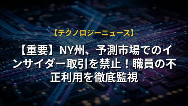 【重要】NY州、予測市場でのインサイダー取引を禁止!職員の不正利用を徹底監視