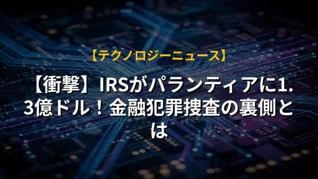【衝撃】IRSがパランティアに1.3億ドル!金融犯罪捜査の裏側とは