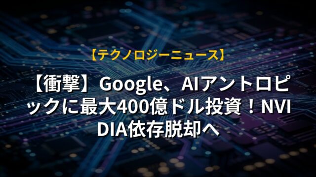 【衝撃】Google、AIアントロピックに最大400億ドル投資!NVIDIA依存脱却へ