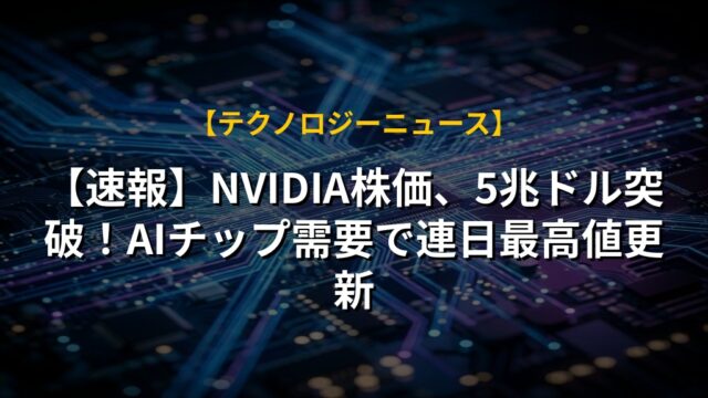 【速報】NVIDIA株価、5兆ドル突破!AIチップ需要で連日最高値更新