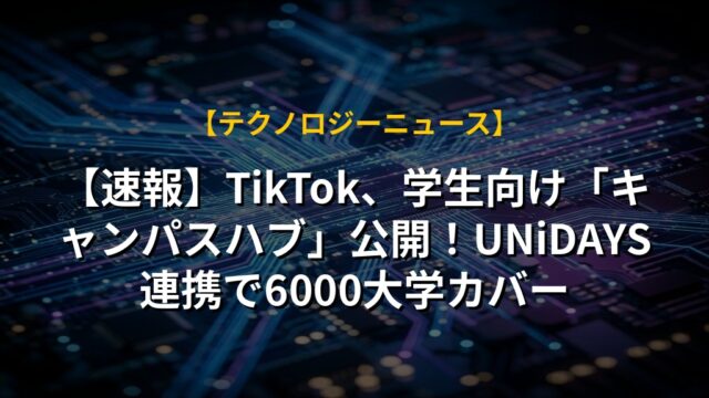 【速報】TikTok、学生向け「キャンパスハブ」公開!UNiDAYS連携で6000大学カバー