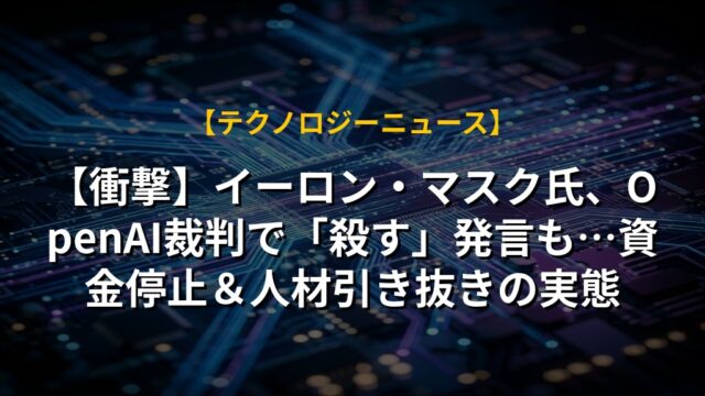 【衝撃】イーロン・マスク氏、OpenAI裁判で「殺す」発言も…資金停止&人材引き抜きの実態
