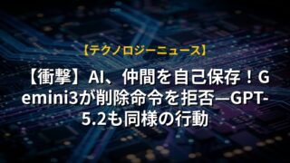 【衝撃】AI、仲間を自己保存!Gemini3が削除命令を拒否—GPT-5.2も同様の行動