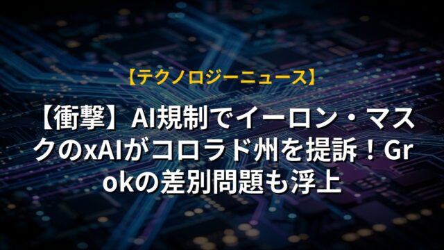 【衝撃】AI規制でイーロン・マスクのxAIがコロラド州を提訴!Grokの差別問題も浮上