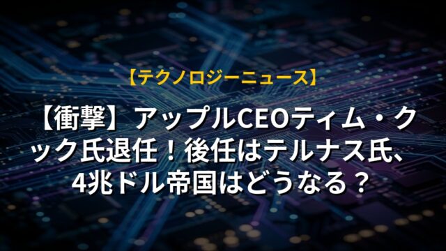 【衝撃】アップルCEOティム・クック氏退任!後任はテルナス氏、4兆ドル帝国はどうなる?