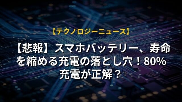 【悲報】スマホバッテリー、寿命を縮める充電の落とし穴!80%充電が正解?