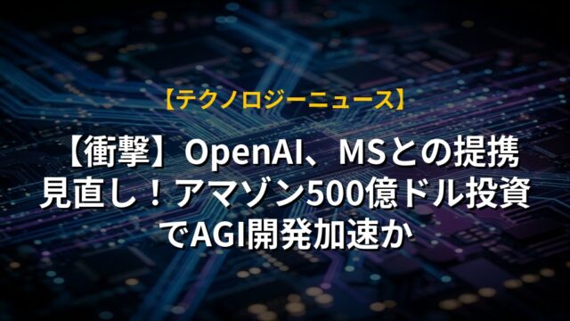 【衝撃】OpenAI、MSとの提携見直し!アマゾン500億ドル投資でAGI開発加速か