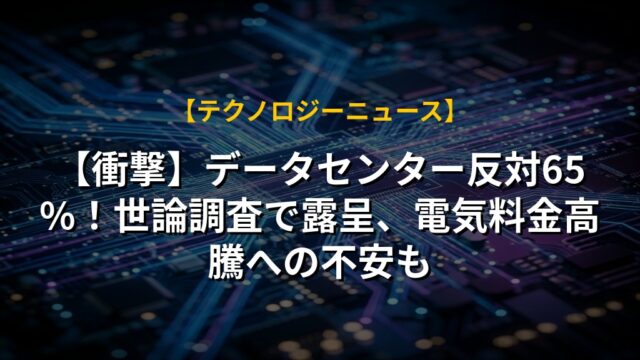 【衝撃】データセンター反対65%!世論調査で露呈、電気料金高騰への不安も