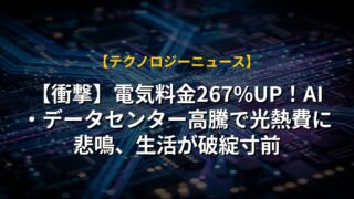 【衝撃】電気料金267%UP!AI・データセンター高騰で光熱費に悲鳴、生活が破綻寸前
