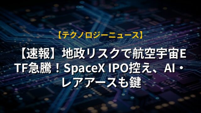 【速報】地政リスクで航空宇宙ETF急騰!SpaceX IPO控え、AI・レアアースも鍵