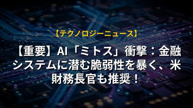 【重要】AI「ミトス」衝撃:金融システムに潜む脆弱性を暴く、米財務長官も推奨!