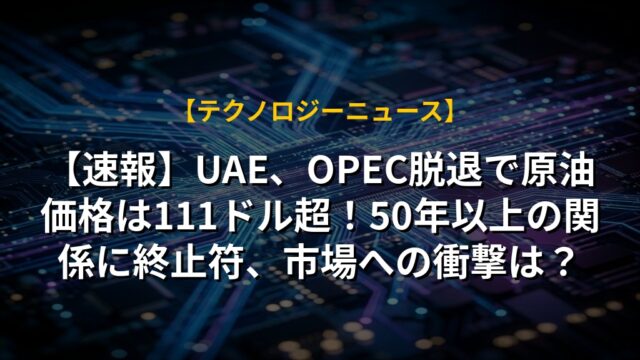 【速報】UAE、OPEC脱退で原油価格は111ドル超!50年以上の関係に終止符、市場への衝撃は?
