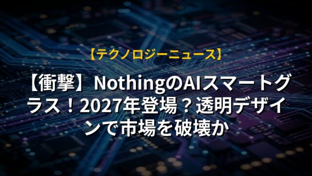 【衝撃】NothingのAIスマートグラス!2027年登場?透明デザインで市場を破壊か