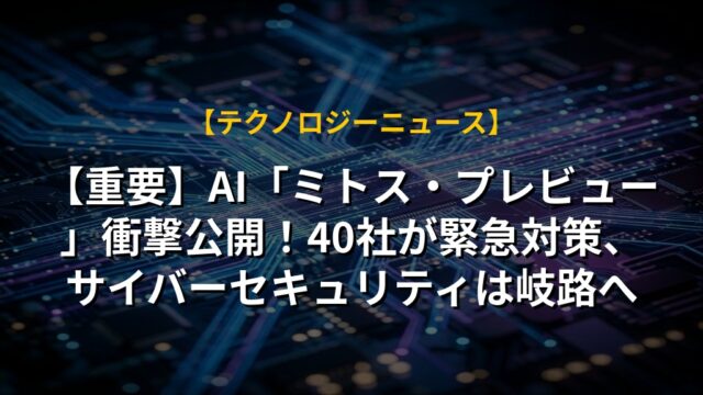 【重要】AI「ミトス・プレビュー」衝撃公開!40社が緊急対策、サイバーセキュリティは岐路へ