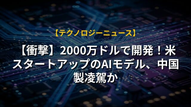 【衝撃】2000万ドルで開発!米スタートアップのAIモデル、中国製凌駕か