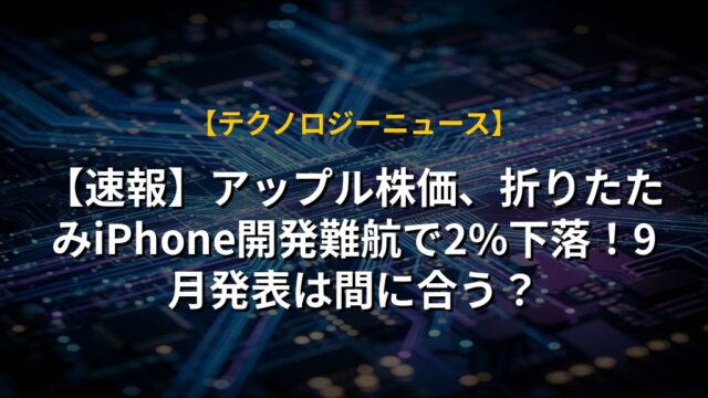 【速報】アップル株価、折りたたみiPhone開発難航で2%下落!9月発表は間に合う?