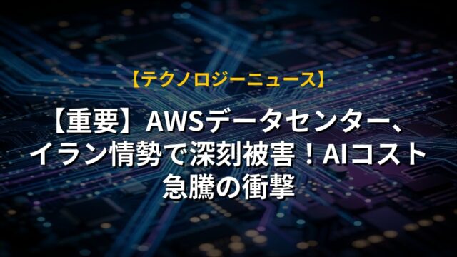【速報】AWSデータセンター、イラン情勢で深刻被害!AIコストも急騰