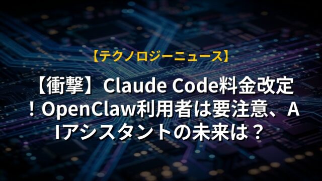 【衝撃】Claude Code料金改定!OpenClaw利用者は要注意、AIアシスタントの未来は?