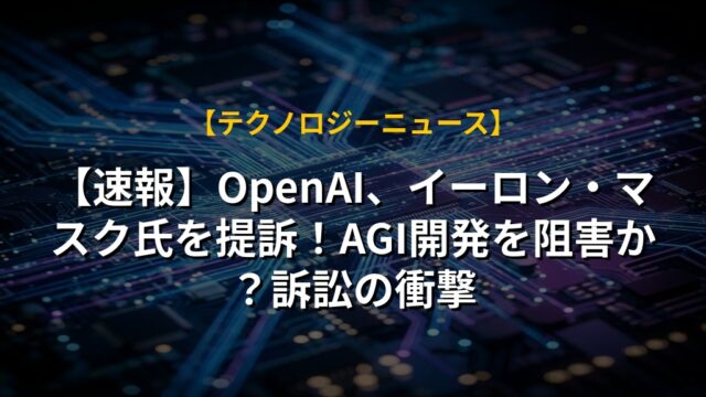 【速報】OpenAI、イーロン・マスク氏を提訴!AGI開発を阻害か?訴訟の衝撃
