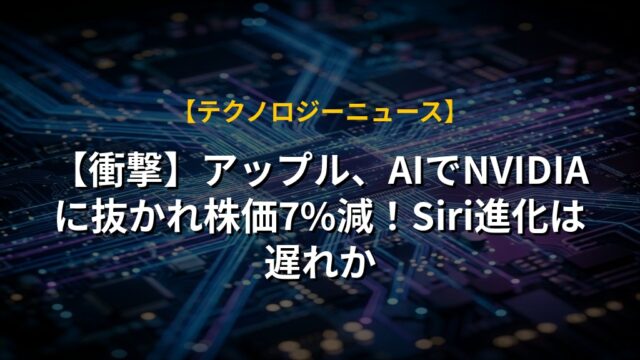【衝撃】アップル、AIでNVIDIAに抜かれ株価7%減!Siri進化は遅れか