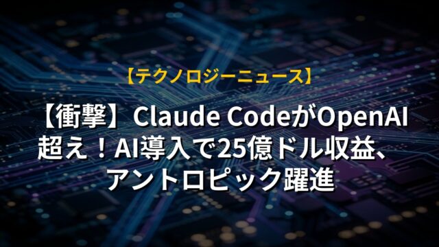 【衝撃】Claude CodeがOpenAI超え!AI導入で25億ドル収益、アントロピック躍進