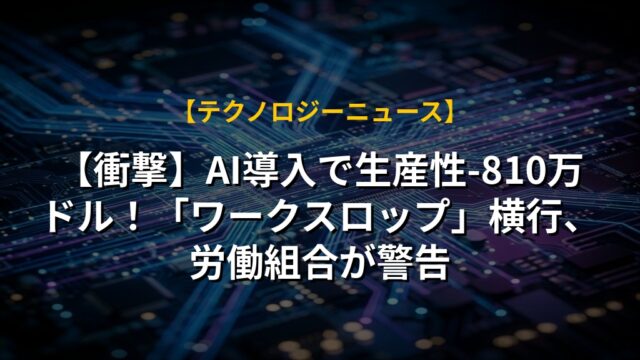 【衝撃】AI導入で生産性-810万ドル!「ワークスロップ」横行、労働組合が警告