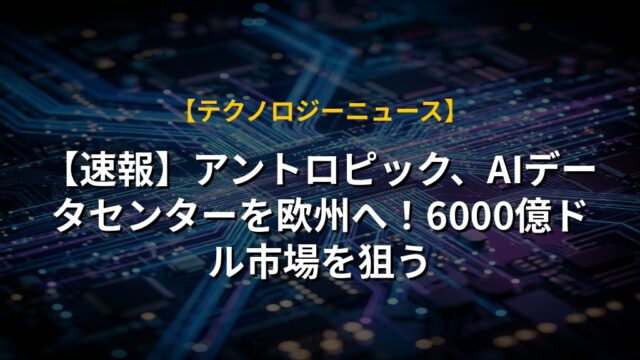 【速報】アントロピック、AIデータセンターを欧州へ!6000億ドル市場を狙う